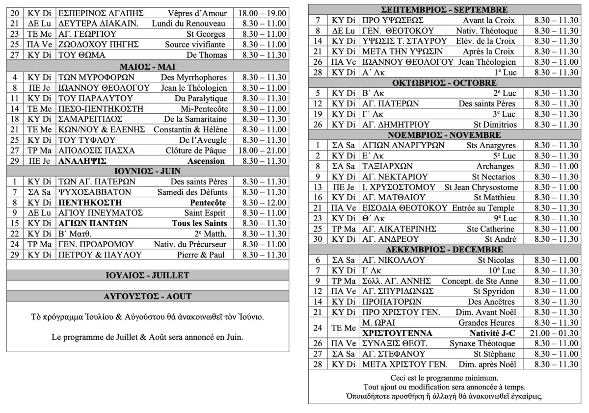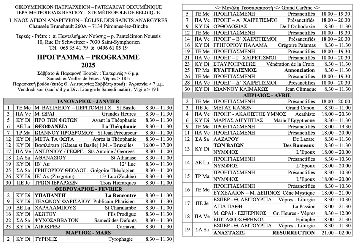 Calendrier des offices de la paroisse des SAINTS ANARGYRES
